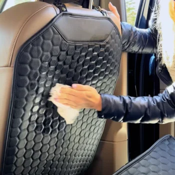 Featuring a sophisticated solid black color with a hexagonal pattern, our seat back protector fits seamlessly into any car interior. It not only guards your seat upholstery against dirt and shoe marks but also adds a touch of style.
